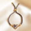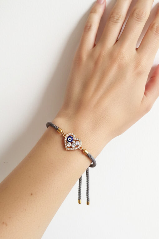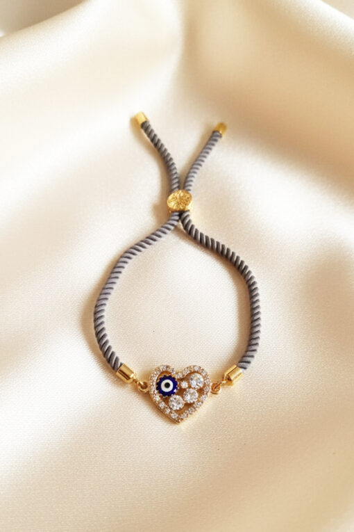 Sparkle Heart Evil Eye Protection Bracelet with Adjustable Grey Rope Strap