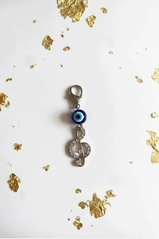 Sparkling Silver Treble Clef & Evil Eye Charm Clip