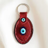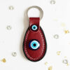Striking Red Leather Evil Eye Keychain with Glass Bead