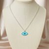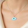 Striking Silver Evil Eye Pendant Necklace in Aqua Blue Enamel