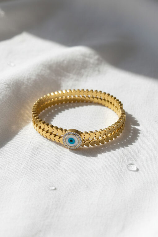 Golden Evil Eye Mesh Bracelet – Stylish Protection Bangle for Women