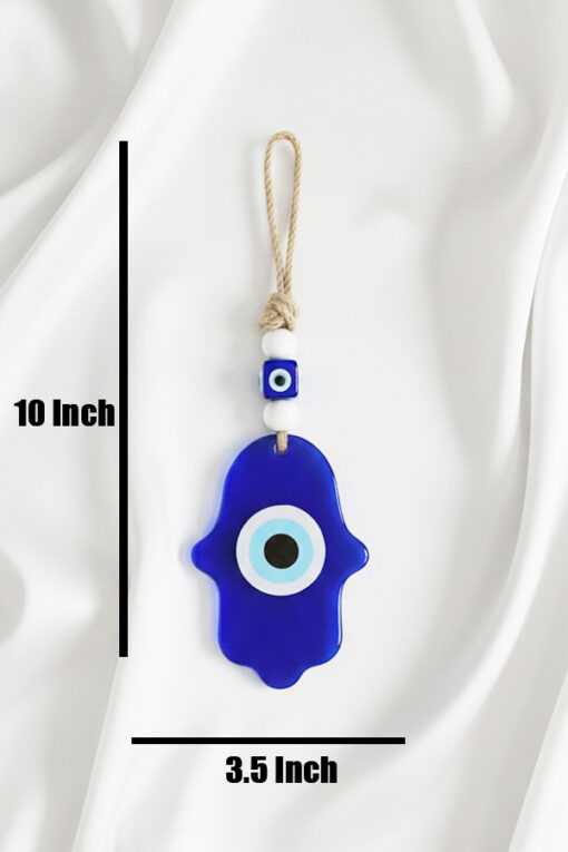 Bring double the protection and powerful blessings to your home or office with this traditional glass hanging. The centerpiece is a substantial, polished deep blue Hamsa Hand (or Hand of Fatima), an ancient talisman symbolizing strength, blessings, and good fortune. The charm is suspended by a simple braided jute cord loop, accented with a decorative cubic bead. This meaningful piece serves as both a stylish decorative accent and a potent amulet. It is perfect for hanging near an entrance, in a window, or in a car, making it an ideal, thoughtful gift for housewarmings or anyone seeking to infuse their environment with safety and positive energy.