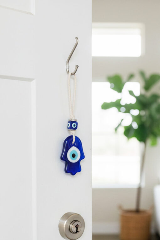 Tags: Boho Home Decor, Evil Eye Glass Hanging, Gift for Positivity, Hamsa Evil Eye Ornament, Hamsa Hand Hanging, Handmade Glass Charm, Home Protection Talisman, Luck & Protection Decor, Protective Wall Charm, Spiritual Protection Hanging, Symbolic Wall Hanging, Traditional Evil Eye Decor, Vastu Evil Eye Hanging