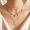 Trendy Anti-Tarnish Gold Layered Necklace with Multi-Charm Evil Eyes