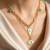 Trendy Gold Layered Necklace with Star Charm & Evil Eye Pendant