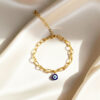 Trendy Gold Oval Link Chain Bracelet with Dangling Evil Eye Charm