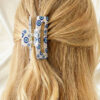 Trendy Pearlescent Acetate Hair Claw Clip with Blue Evil Eye Pattern