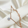 Trendy Rose Gold Layered Bracelet with Paperclip Chain & Evil Eye Charm