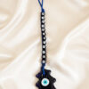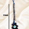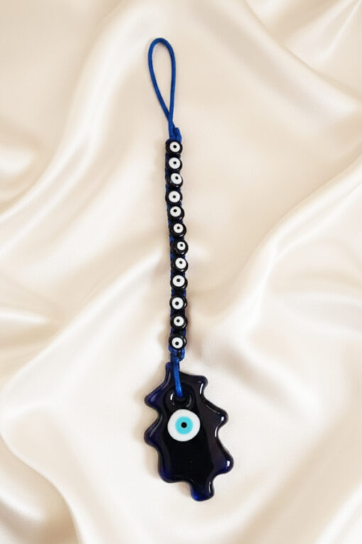 The centerpiece is an abstract, irregularly shaped deep blue glass charm, featuring the classic Evil Eye motif, which gives the traditional talisman a contemporary edge. The charm is suspended by a long, striking strand of alternating dark and white beads, creating a column of continuous protective power. The Evil Eye is a globally recognized amulet used to ward off negative energy and bring good fortune. Its elongated design and unique shape make it a captivating focal point. Perfect for hanging near an entrance, in a window, or as a decorative piece in your car, this durable and stylish item makes an ideal gift for anyone seeking to infuse their space with luck and unique, meaningful décor.