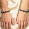 Unisex Black Lava Stone Bracelet with Hamsa Hand Evil Eye Charm