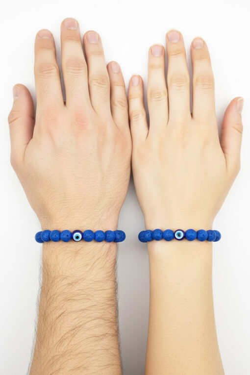 Unisex Blue Lava Stone Beaded Bracelet with Evil Eye Protection