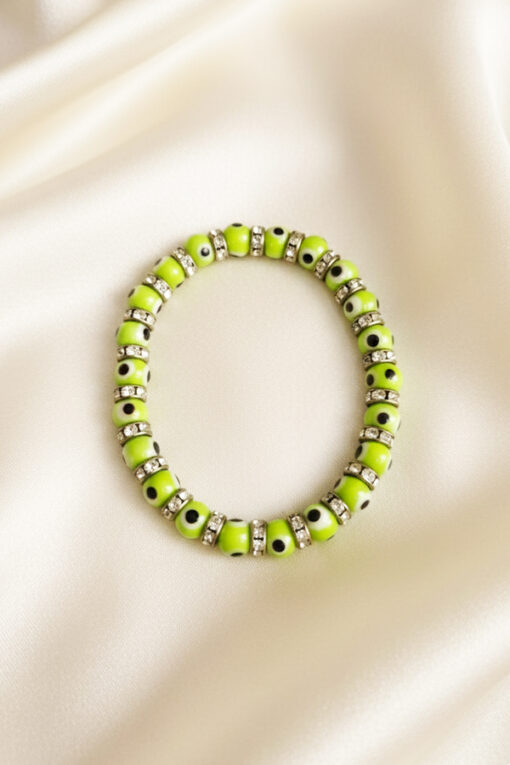 Inject a burst of high-voltage energy into your style with this Electric Lime Green Evil Eye Bracelet.