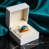 Elevate your everyday look with this unique and vibrant resin ring. Featuring a bold orange and deep blue dual-tone design, this piece captures the spirit of trendy, modern jewelry. The central black evil eye detail adds a touch of mystique and protection, making it a stylish statement piece. Crafted with a smooth, glossy finish, it offers comfortable wear while maintaining a luxurious appeal.
