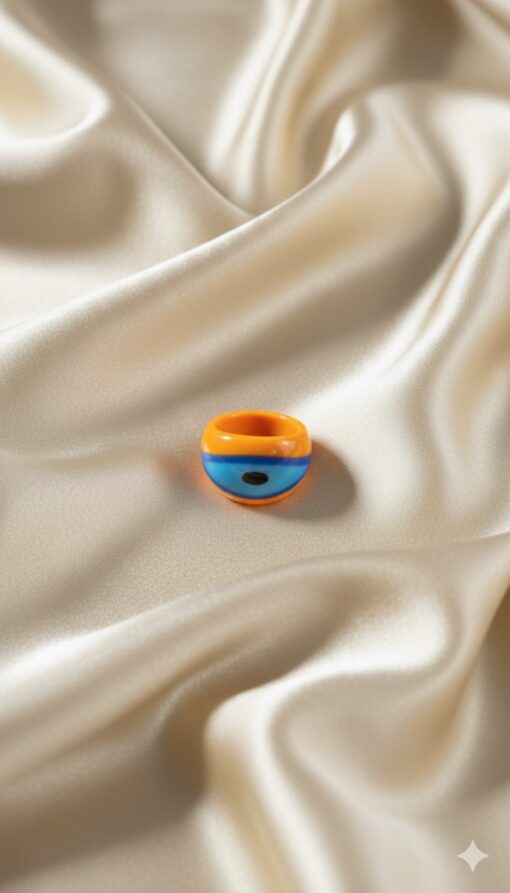 Vibrant Orange & Blue Resin Evil Eye Ring – Trendy Colorful Statement Jewelry