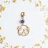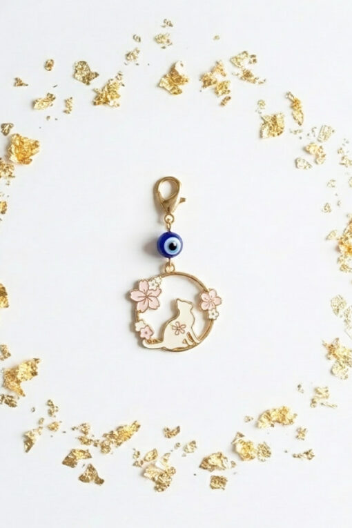 Whimsical Gold Enamel Cat & Sakura Charm Clip with Evil Eye