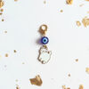 Whimsical White Cat & Evil Eye Clip-On Charm