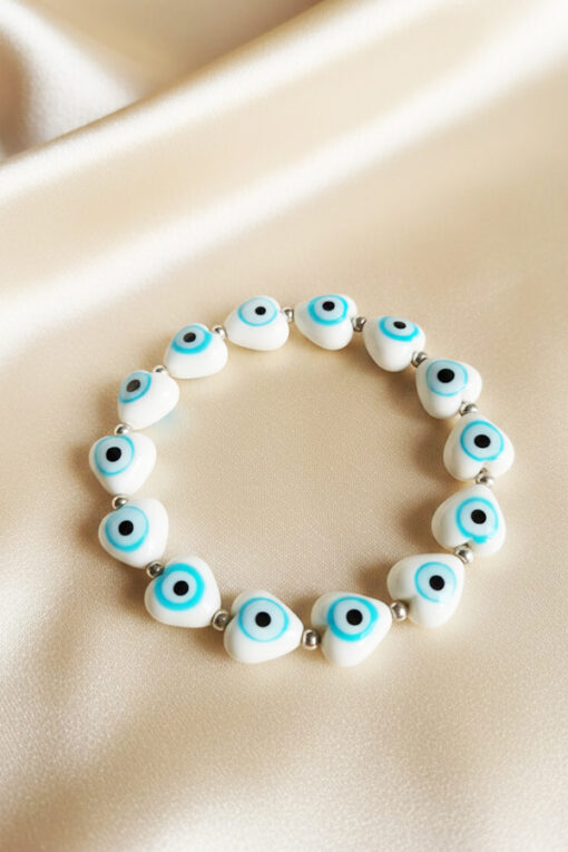 Celebrate love and safeguard your energy with this charming White Heart Evil Eye Bracelet.