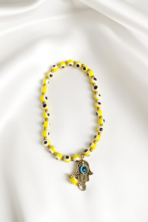 Tags: boho spiritual accessory, everyday wear bracelet, evil eye hamsa jewelry, evil eye protection charm, faith charm jewelry, gold hamsa hand bracelet, good luck charm bracelet, hamsa evil eye bracelet, hamsa hand charm, handmade style bracelet, meditation bracelet, protection charm bracelet, protective amulet bracelet, spiritual protection jewelry, symbolic charm bracelet, trendy spiritual jewelry, unisex spiritual bracelet, yellow bead bracelet, Yellow Evil Eye Bracelet, yellow spiritual jewelry
