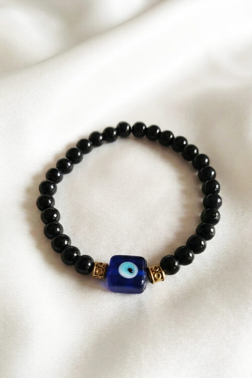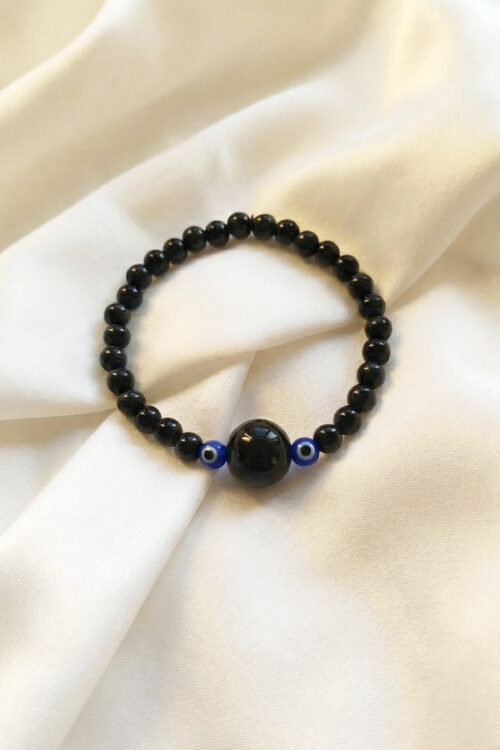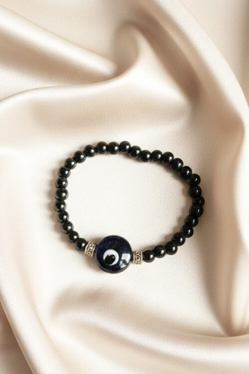 Sleek Black Onyx-Style Evil Eye Bracelet – Dual Protection Amulet