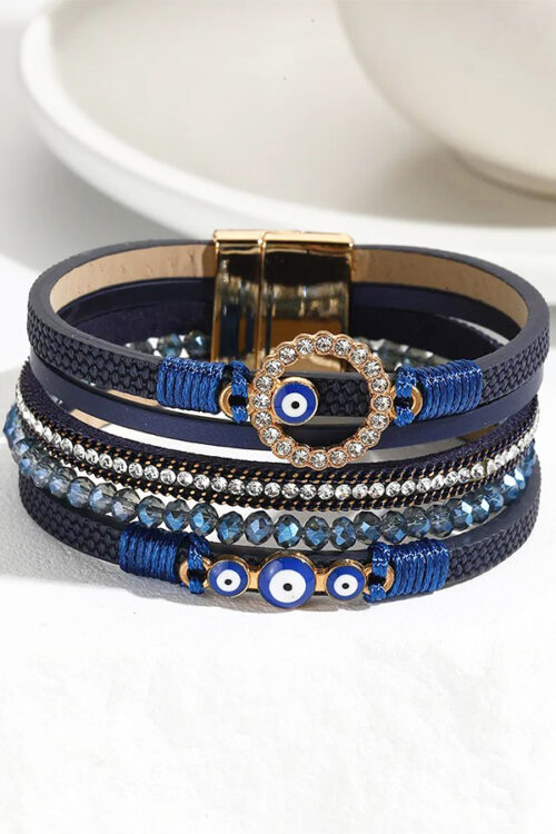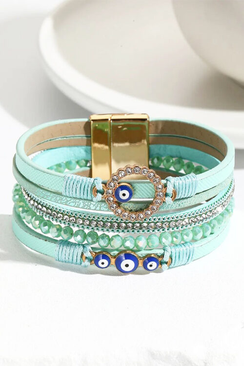 Turquoise Evil Eye Bracelet with Crystal Accents Magnetic Clasp