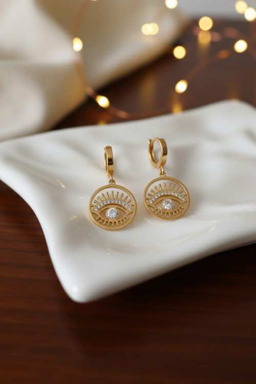 Golden Evil Eye Hoop Earrings – Charm of Protection & Elegance
