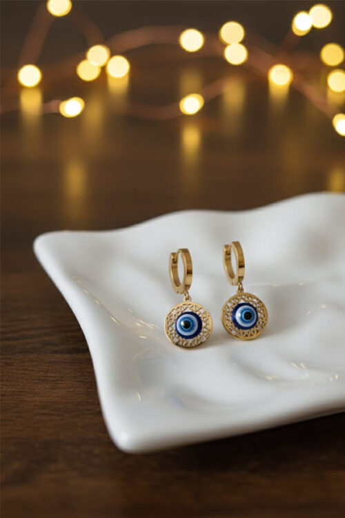 Golden Evil Eye Hoop Earrings – Charm of Protection & Elegance