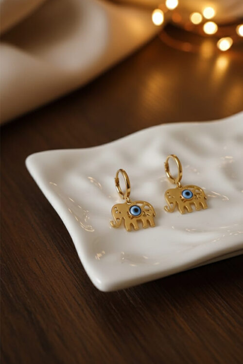 Golden Hamsa Evil Eye Earrings – Symbol of Protection & Positive Energy