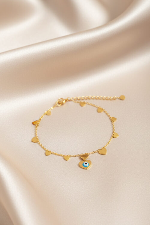 Charming Anti-Tarnish Gold Dainty Heart & Evil Eye Charm Bracelet