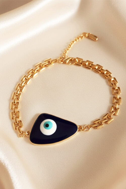 Bold Gold Anti-Tarnish Geometric Link Bracelet with Evil Eye Charm