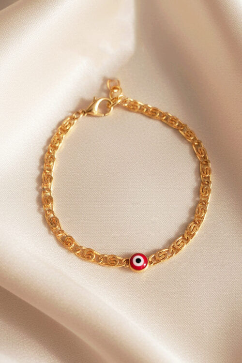 Bold Gold Byzantine Chain Bracelet with Striking Red Evil Eye Charm
