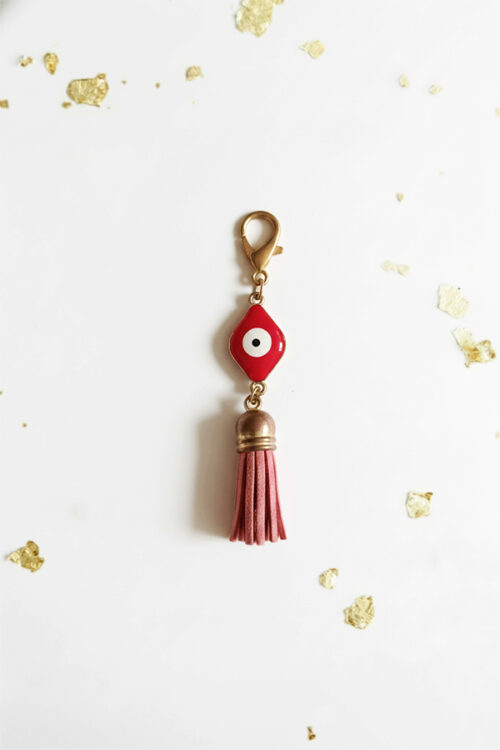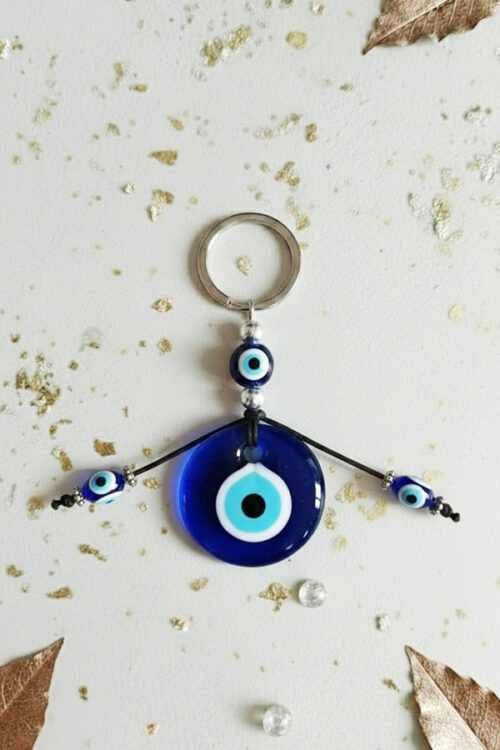 Antique Silver Butterfly & Evil Eye Protective Charm Keychain