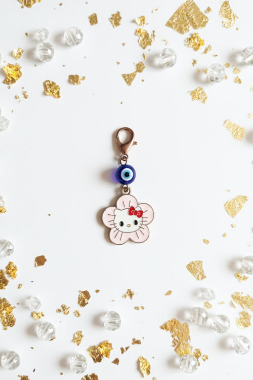 Adorable Hello Kitty Flower Clip-On Charm with Evil Eye Protection