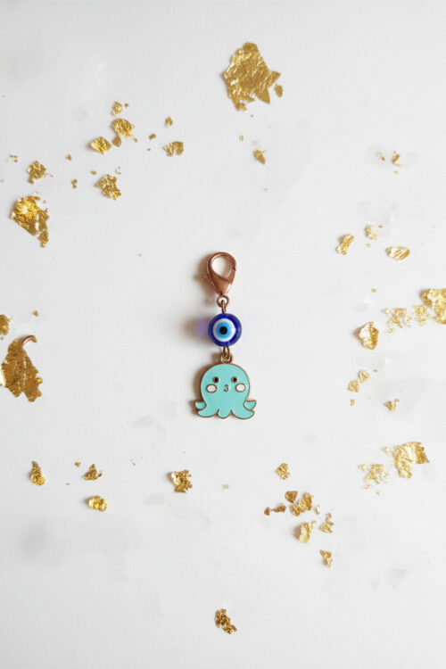 Adorable Rose Gold Octopus Charm Clip with Evil Eye Protection