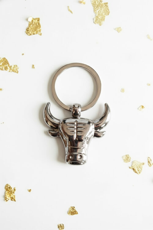 Striking Silver Bull Head Keychain – Symbol of Power and Strength