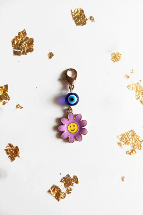 Glamorous Rose Gold Sunburst Evil Eye Clip-On Charm in Lavender