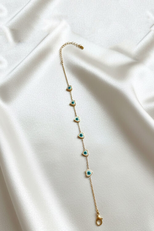Elegant Gold Anti-Tarnish Bracelet with Bold Heart & Evil Eye Charms