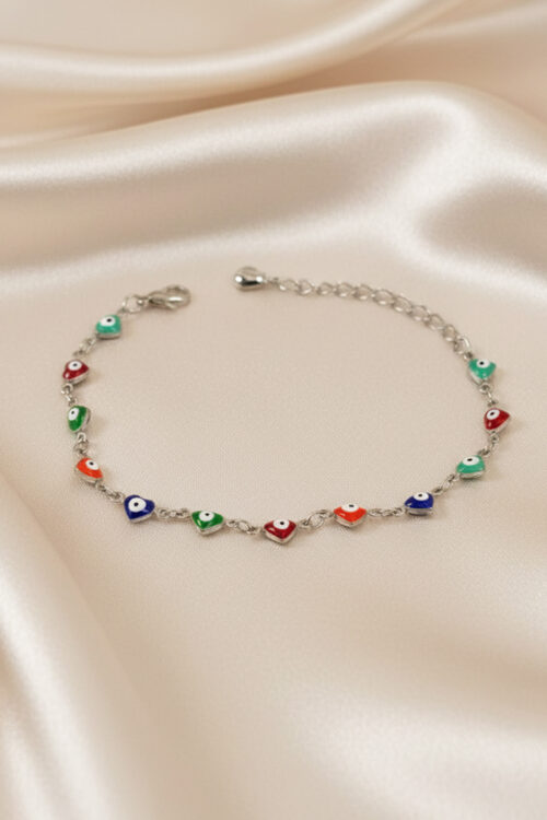 Playful Silver Anti-Tarnish Rainbow Evil Eye Heart Chain Bracelet