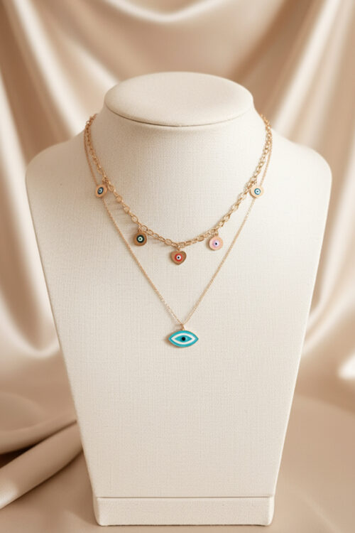 Trendy Anti-Tarnish Gold Layered Necklace with Multi-Charm Evil Eyes